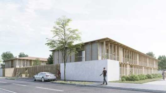 30 logements regroupés autour de 3 corps de bâtiments, 1 parc de stationnement Structure bois. Projet réalisé en BIM